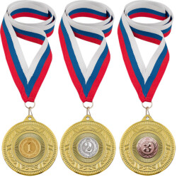Для награждения победителей спортивного соревнования или корпоративного мероприятия можно приобрести комплекты медалей. Как правило, они включают три изделия (золото, серебро, бронза) и 3 ленты. Все элементы выполнены в одном стиле. Нет необходимости тратить время на самостоятельный сбор комплекта.