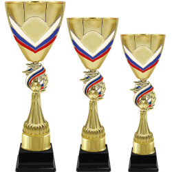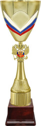 Кубки с российской символикой прекрасно подходят для награждения в спортивных соревнованиях, конкурсах и т. д. городского и регионального масштаба. Изделия имеют привлекательный дизайн (двуглавый орел, триколор).