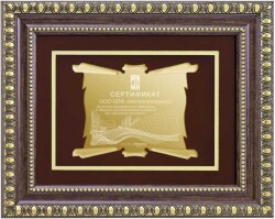 Элегантная багетная рамка 50х40 см из полистирола в комплекте с УФ печатью на металлическом дипломе 23х18 см по Вашему индивидуальному макету.
