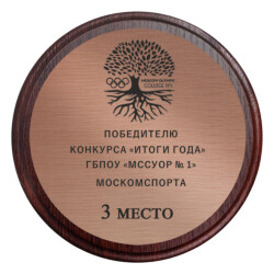 Ламинированная плакетка из прессованного дерева + пластиковый вкладыш + гравировка (открывается черным цветом) по Вашему макету (разработка макета оплачивается дополнительно). Скидка ограничена.