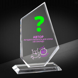 Награда из стекла OPTIWHITE. Лазерная гравировка по Вашему макету в комплекте. Разработка макета в стоимость не входит и оплачивается отдельно. ВНИМАНИЕ! Скидка по дисконтной карте ограничена!