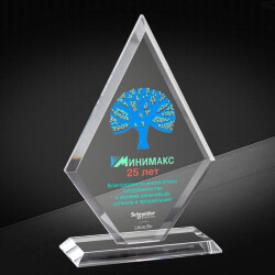 Награда из стекла OPTIWHITE. Лазерная гравировка по Вашему макету в комплекте. Разработка макета в стоимость не входит и оплачивается отдельно. ВНИМАНИЕ! Скидка по дисконтной карте ограничена!