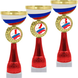 Продукция для истинных патриотов! Серия кубков традиционной формы с элегантными чашами из металла и изысканными стемами из пластика. Металлическая эмблема 50 мм в комплекте.